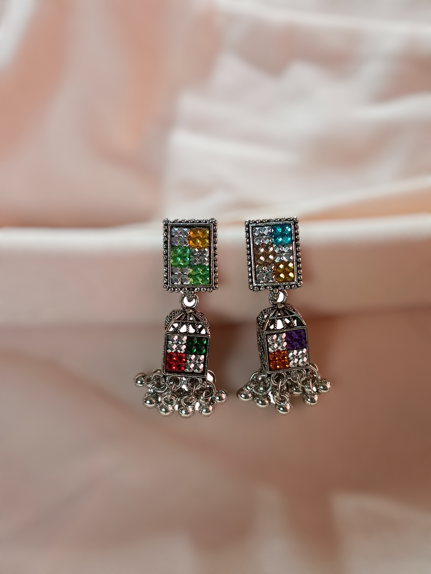 Multi colour stone oxidised earrings